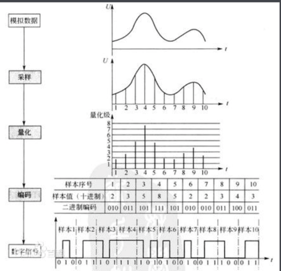 有一定电子基础的都知道传感器采集音频信号是模拟量,而我们实际传输过程中使用的是数字量。而这就涉及到模拟转数字的过程。而模拟信号数字化必须经过三个过程,即抽样、量化和编码,以实现话音数字化的脉冲编码调制(PCM,Pulse Coding Modulation)技术。