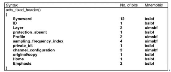 ADTS:Audio Data Transport Stream 音频数据传输流。这种格式的特征是它是一个有同步字的比特流,解码可以在这个流中任何位置开始。它的特征类似于mp3数据流格式。
