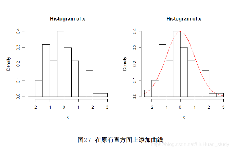 curve(dnorm(x),add=T) # 添加曲线#对以下命令,有疑惑