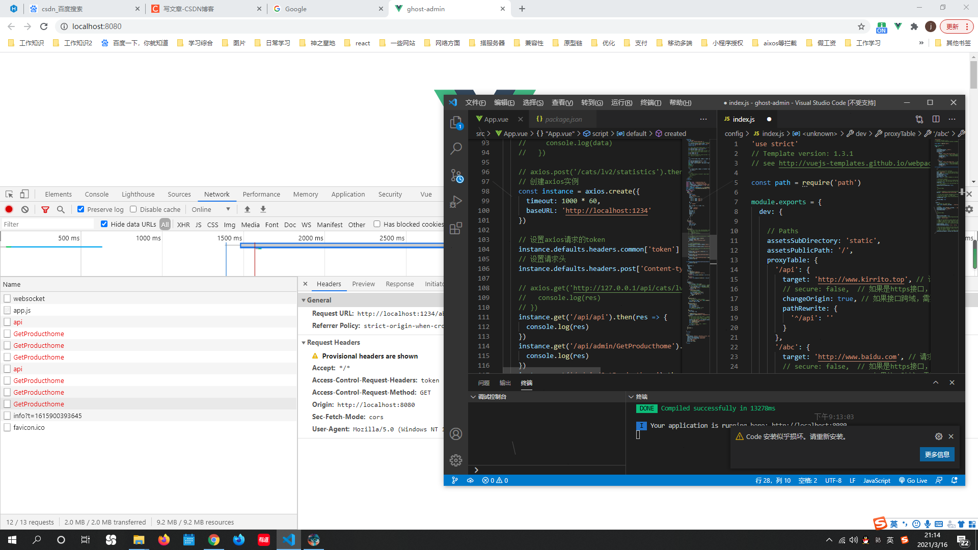 首先,axios设置非当前项目路径的地址,于是接口都挂了,代理没成功