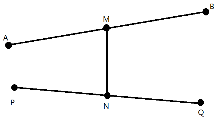 3):点 P 不在树的直径上,并且假设存树的直径不是 WQ 而是 AB,且 AB 与 PQ 没有交点,如下图。因为 PQ 为最远,所以 NP + NQ > NQ + MN + MB,进而得到 NP > MN + MB。易得 NP + MN > MB。不等式两边同时加上 AM 得 NP + MN + AM > MB + AM = AB。与 AB为树的直径的前提相矛盾。所以假设不成立。