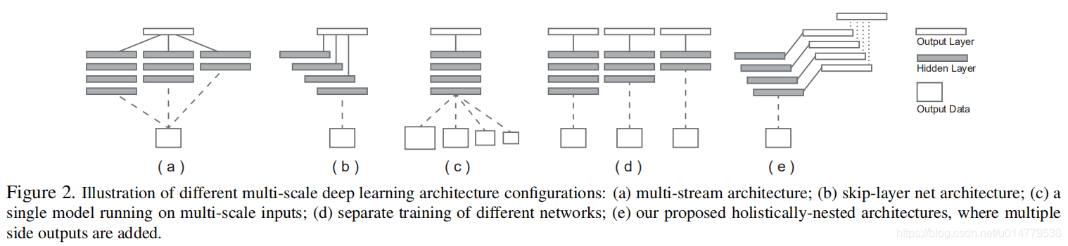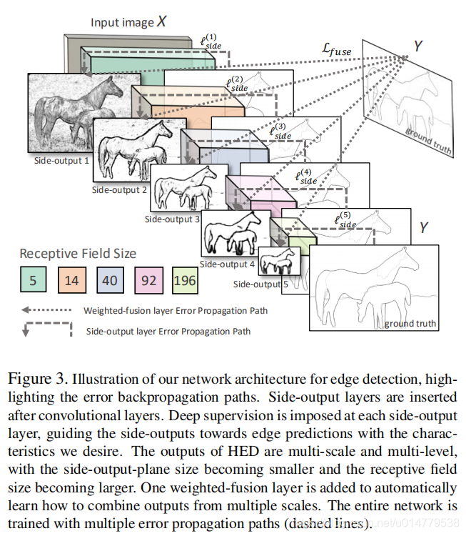 上述两种设置中的一个共同点是,在两种架构中,只有一个输出损失函数,并且产生了单个预测。然而,在边缘检测中,多个预测组合为边缘图通常是有利的(并且实际上是普遍的)。