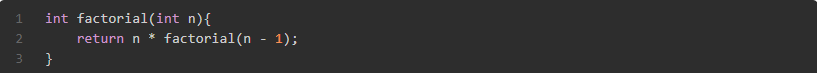 阶乘的一个有趣特性是,某个数的阶乘等于起始数(starting number)乘以比它小一的数的阶乘。例如,factorial(5) 与 5 * factorial(4) 相同。您很可能会像这样编写阶乘函数: