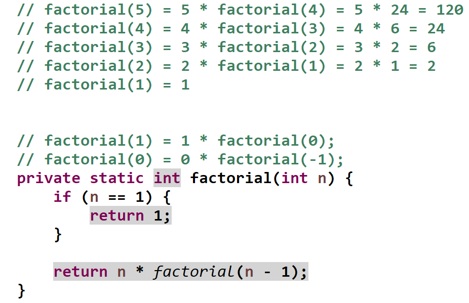 由于小于 1 的数的阶乘没有任何意义,所以我们在计算到数字 1 的时候停止,并返回 1 的阶乘(即 1)。因此,真正的递归函数类似于: