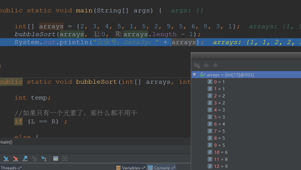 System.out.println("公众号:Java3y:" + findMax(arrays, 0, arrays.length - 1));