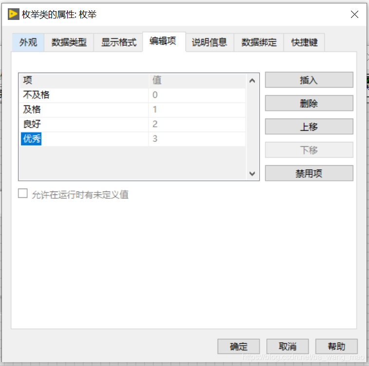 现在我们不想要下拉项中的“”假“和”真“选项,我们希望的下拉项为:
