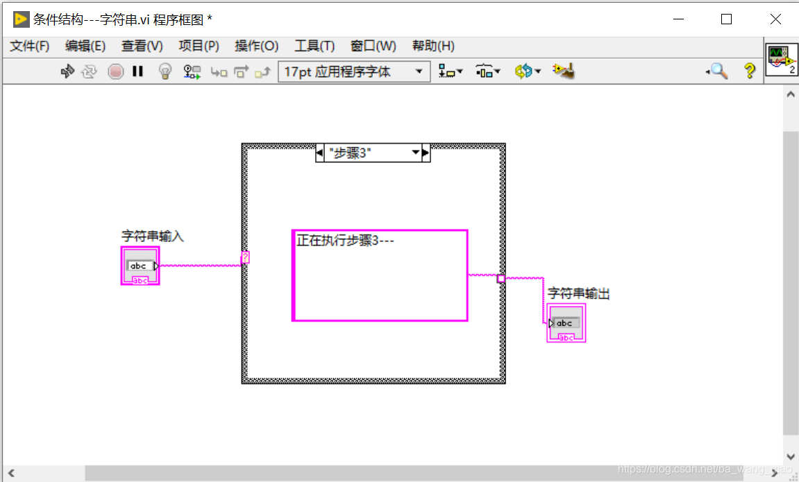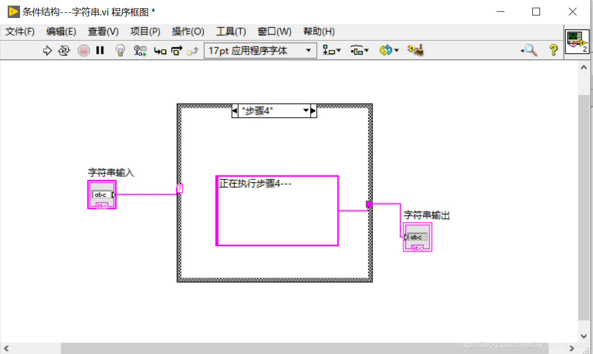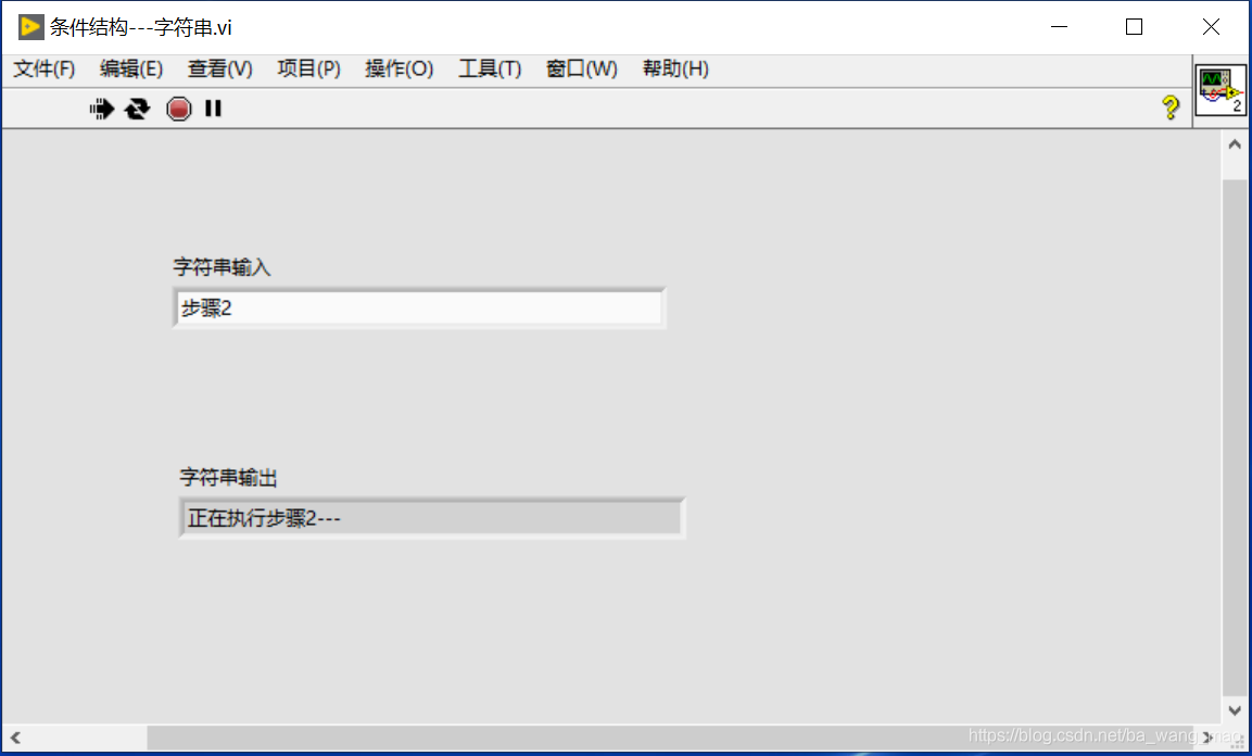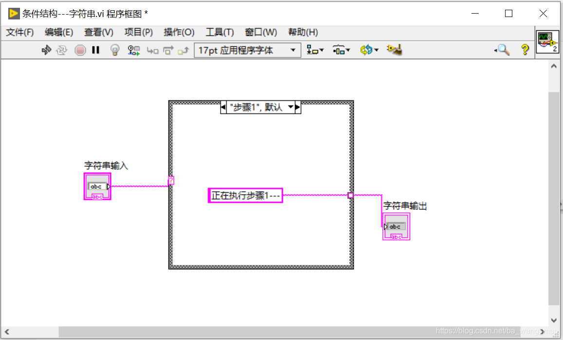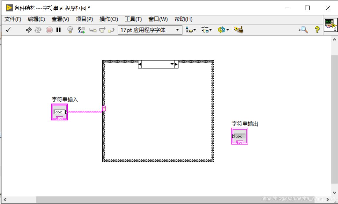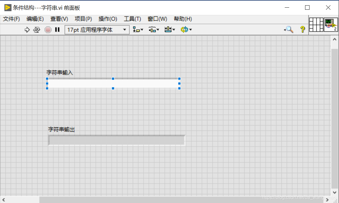 这种分支比较简单,前面板添加1个字符串输入控件(参见:字符串输入)和字符串显示控件(参见:字符串输出)。