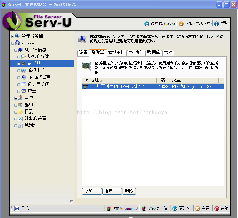 使用Serv-U搭架FTP服务器很简单,网上教程也很多,不再累述。我这里只记录下我遇到的问题。