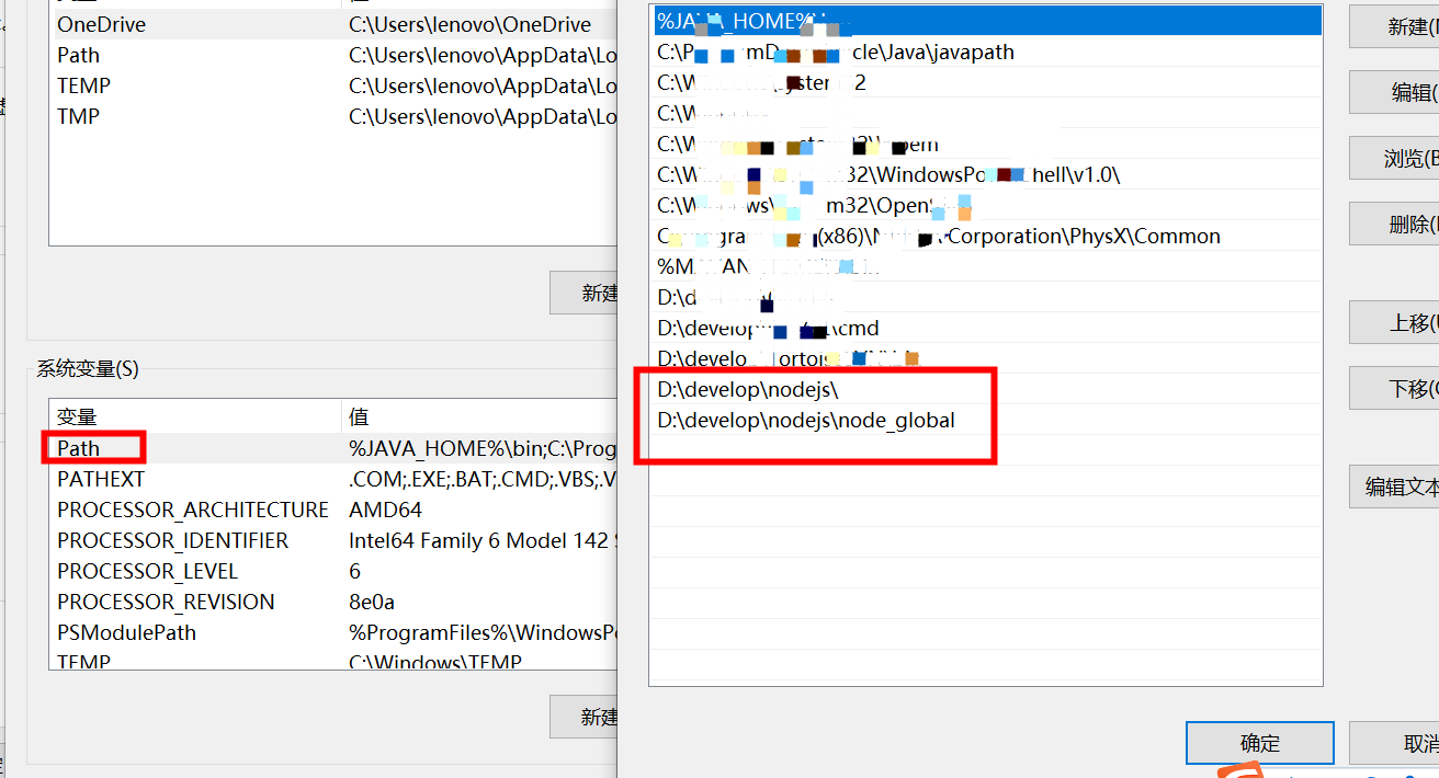 2.环境变量配置 windows系统会将安装目录自带到系统变量Path路径后面,否则的话,就在windows设置环境变量的地方,将Nodejs安装路径添加到Path路径后面,
