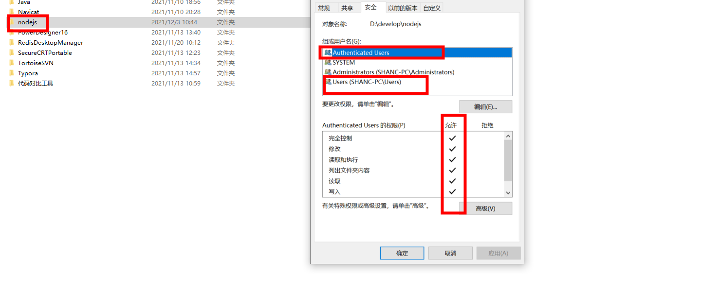 若报无权限错误 修改文件夹权限