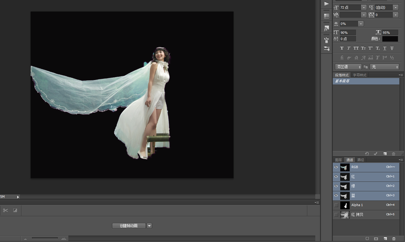 9、到这一步就已经把整个人物加透明婚纱扣出来了,可以将它放在其他背景下,看看效果如何