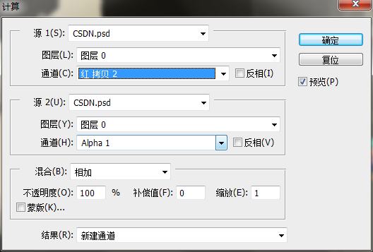 7、执行“图像”|“计算”对话框,设置参数如图所示: