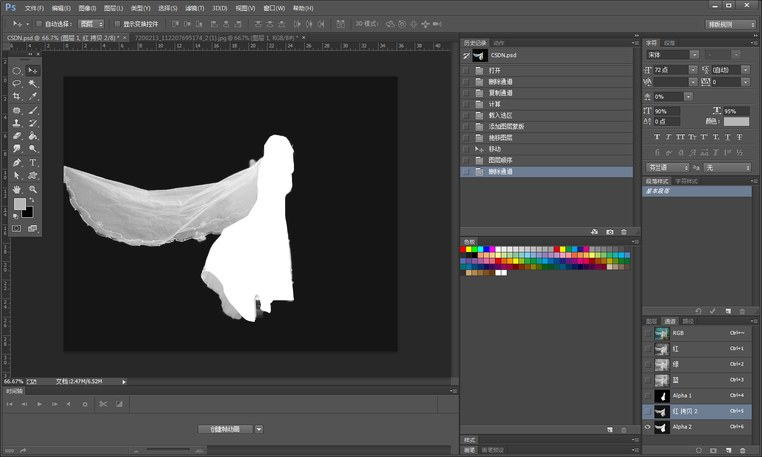 8、按CTRL单击Alpha2,将其载入选区;