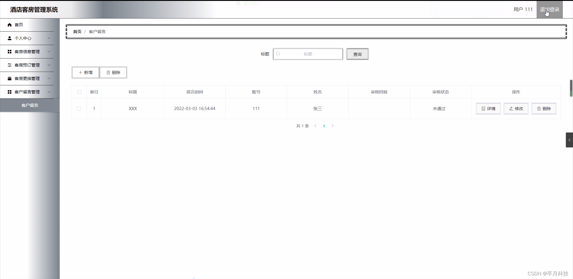 ssm毕设项目酒店客房管理系统cpq7c(java+VUE+Mybatis+Maven+Mysql+sprnig)