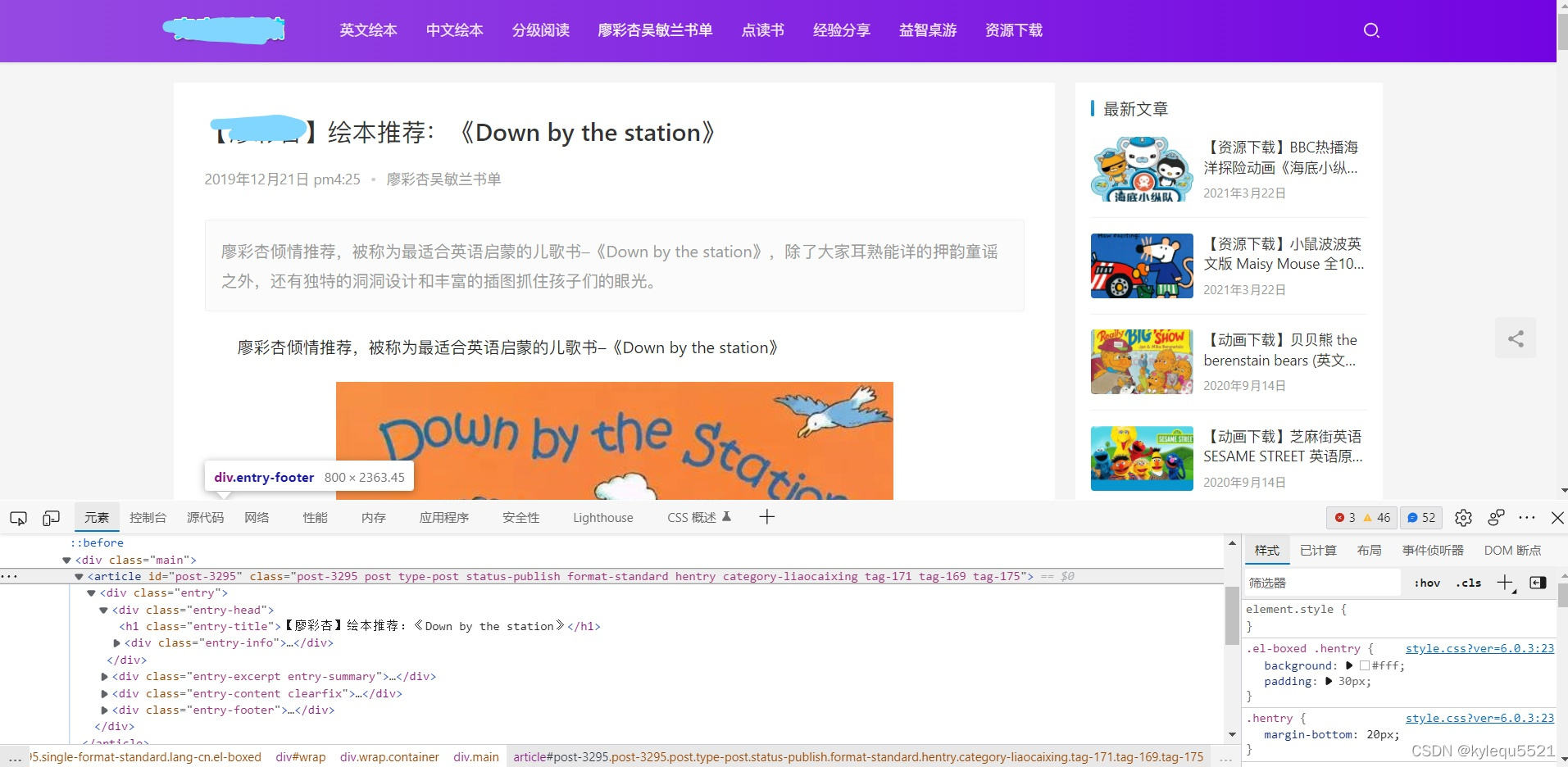 - 分析网页我们可以得到我们要的title就在class = 'entry-title'的a标签里面,而且我们还可以拿到文章的摘要在class=‘entry-summary’的div里面