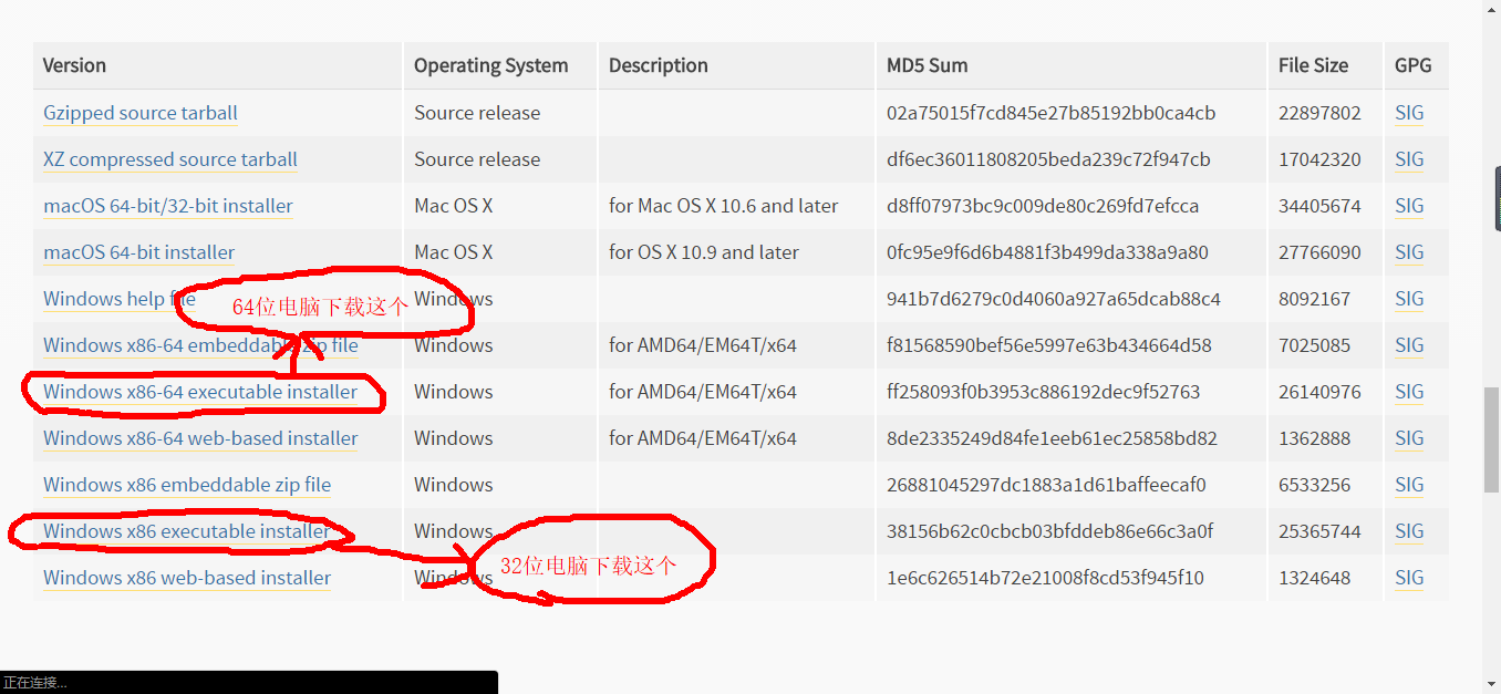 选择最新版本后,一直往下滑,到最底下,按图示进行点击