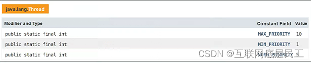 final void setPriority(int newPriority) | 更改此线程的优先级是5;线程优先级的范围是:1-10,数字越大优先级越高。以后设置优先级也不会直接写数字,而是使用Thread类中提供三个常量值设置优先级属性。 |