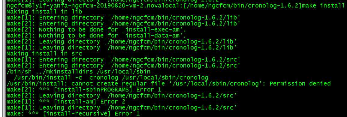 查看错误信息发现需要在 /usr/local/下新建sbin文件夹,但我这个账号没这个权限,现在又需要使用cronolog来分割日志,只能自己动手,丰衣足食了。