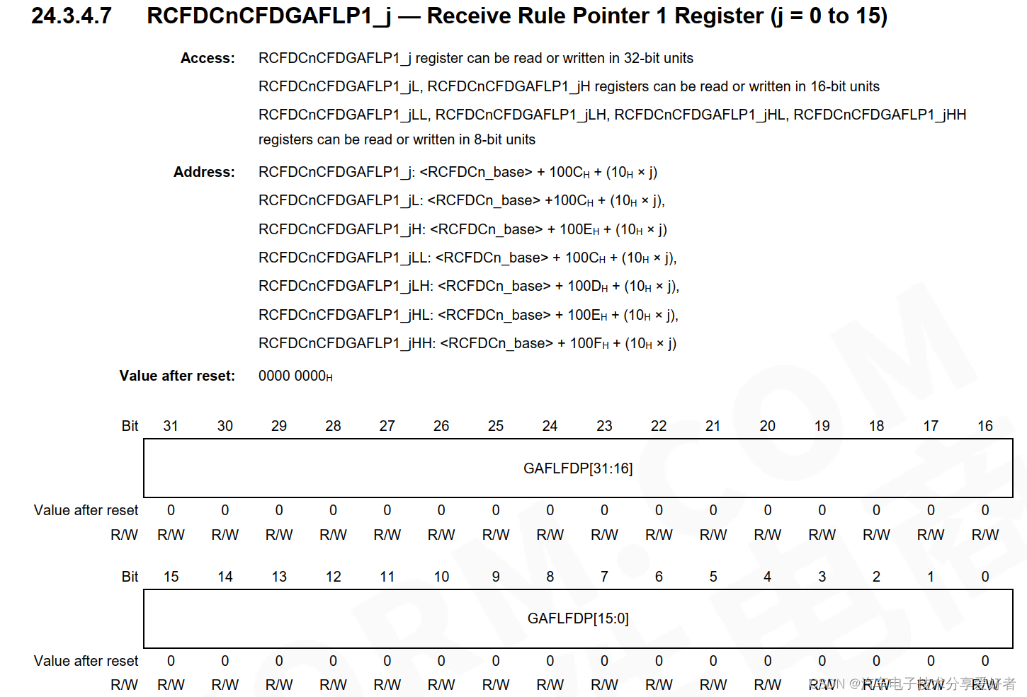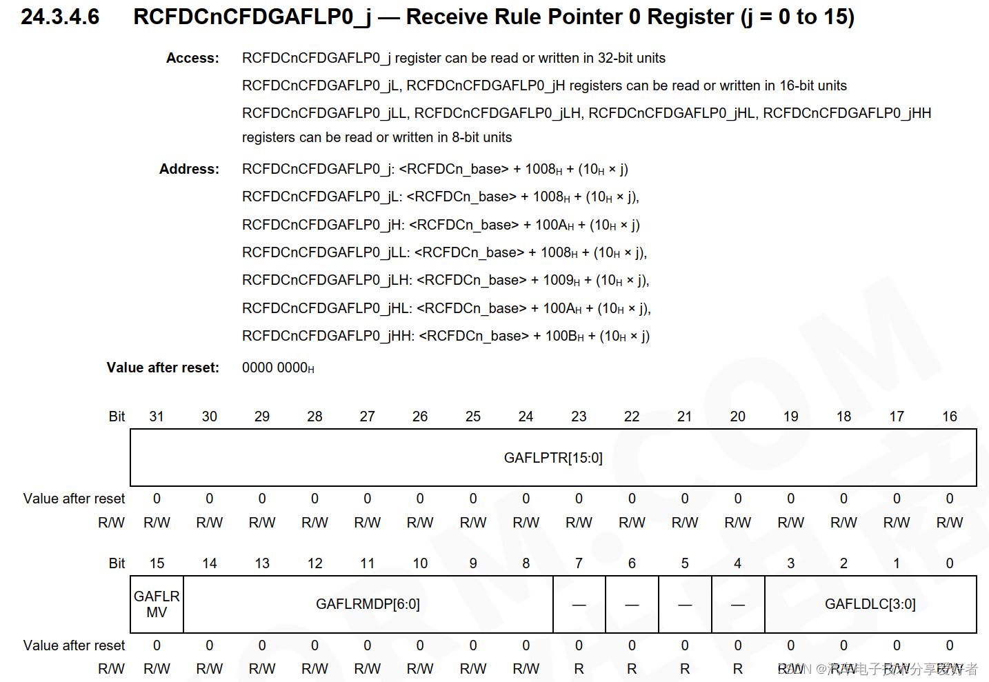 RCFDCnCFDGAFLP0_j, and RCFDCnCFDGAFLP1_j registers (j = 0 to 15).