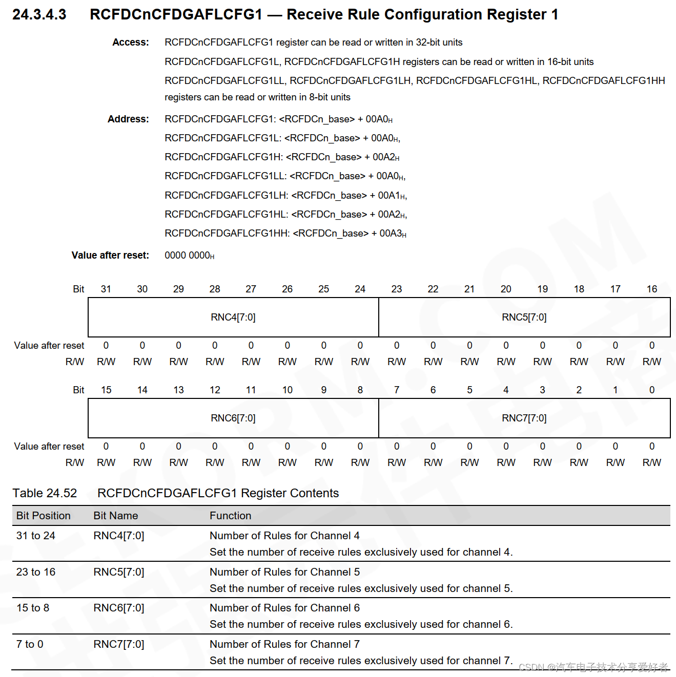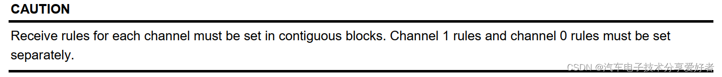 FLCFG0和FLCFG1寄存器指定CAN通道包含的Rule数量;8个通道(channel0-channel7)由这两个寄存器完成数量设置。