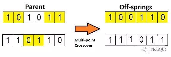 1:交叉(多点交叉),其他种类的交叉算法详见https://blog.csdn.net/u012750702/article/details/54563515/