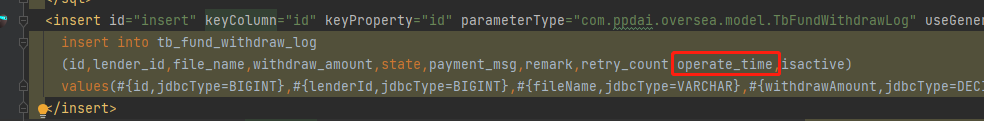 可是看了下代码发现mybatis的sql语句插入的时候包含了这个operate_time字段