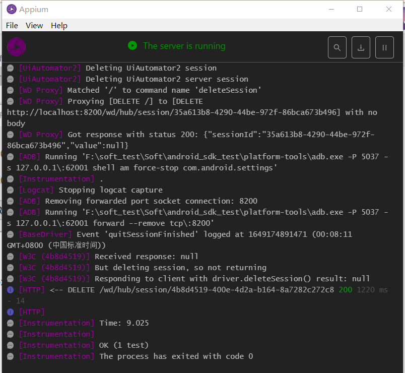 最后滴运行成功结果图(appium+pycharm),呜呜呜终于能睡个好觉了。