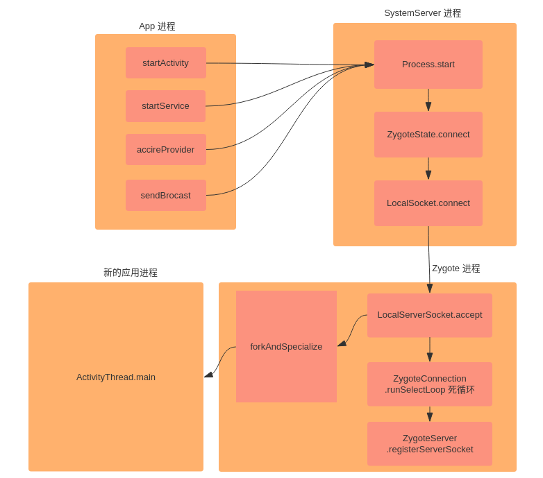 - 开启消息循环。调用Looper.prepareLoop() Looper.loop(),开启主线程的消息循环,以便于ApplicationThread调用ActivityThread中的生命周期方法。