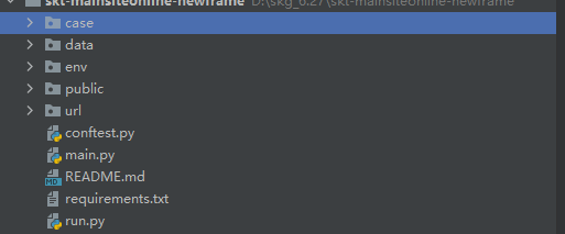 运行这个run文件,就可以执行用例,可以根据需要配置执行用例的路径,如果需要执行单个用例,就跟用例的具体路径,如果需要执行所有用例,就到case目录,如下图所示