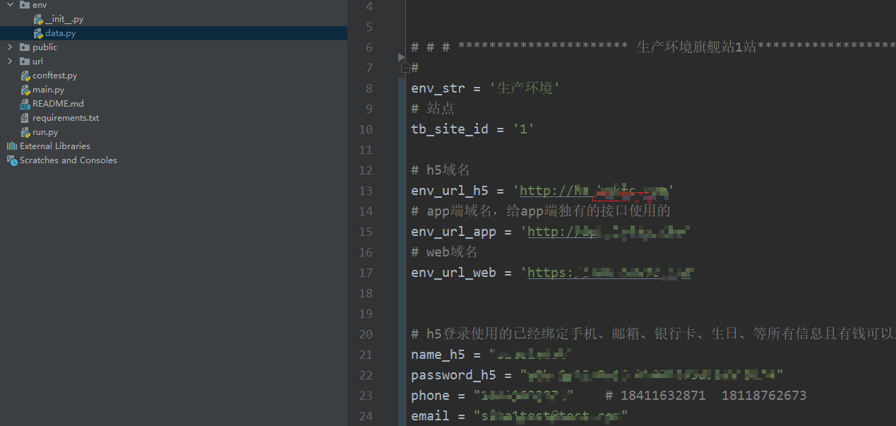 用例需要配置的环境信息,域名,或者一些其他配置,比如代理,用于登录的账号,密码等相关内容可以统一放置到这个模块