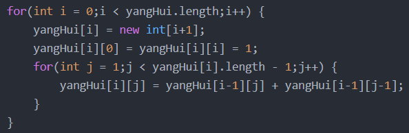 int[][] yangHui = new int[10][]; 只需要把 10 替换成其他数字,就可以得到你想要的杨辉三角的行数