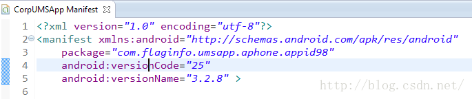 包名(package):指定本应用内java主程序包的包名。当没有指定apk的文件名时,编译后产生程序包将以此命名。本包名应当在Android系统运行时唯一。