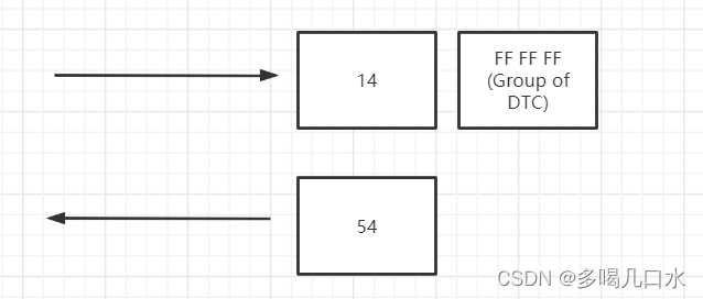 当故障被清除以后,系统是不会把DTC清除掉的,这时候用14服务进行擦写,14服务后面会加3个字节代表我们的DTC的分组,如果拿到了肯定响应54的时候,就代表所有的DTC都已经被清除掉了。
