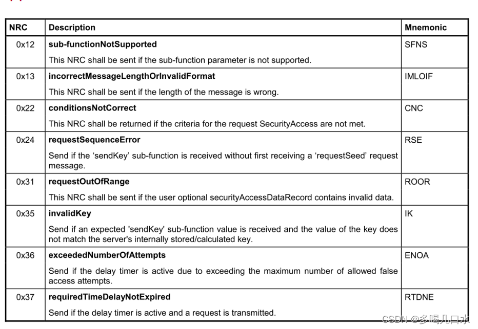 不同的NRC,对于10来说主要用到的就是12 13还有22三种否定响应。