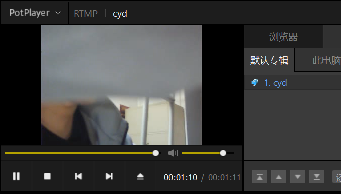 本地利用potplayer,输入地址rtmp://localhost/oflaDemo/cyd访问结果如下图所示: