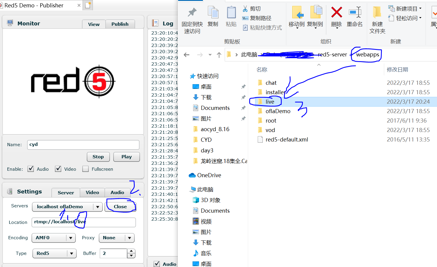 文件夹:E:\CYD\RED5\red5-server\webapps\oflaDemo\streams