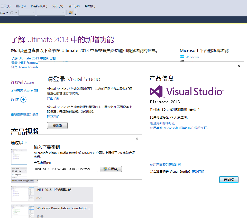 Visual Studio Ultimate 2013 KEY(密钥):BWG7X-J98B3-W34RT-33B3R-JVYW9