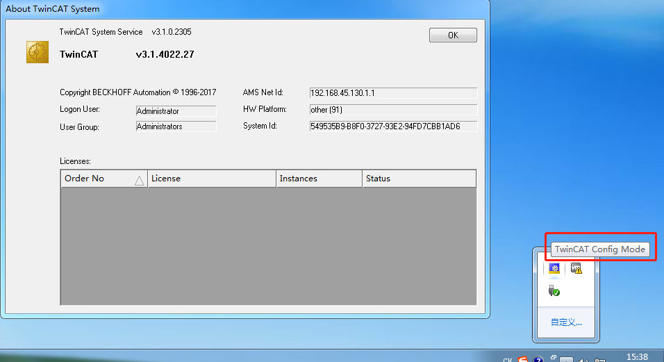 使用win10系统安装完成后,需要系统管理员运行 C:\TwinCAT\3.1\System\win8settick.bat,否则TC3无法本地激活运行。