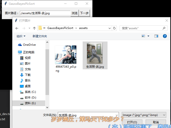 当直接回车时将读取默认路径图片(./assets/生活照-武.jpg),相对路径是从打开程序的文件夹开始的,若输入路径无效或不可读将继续询问输入