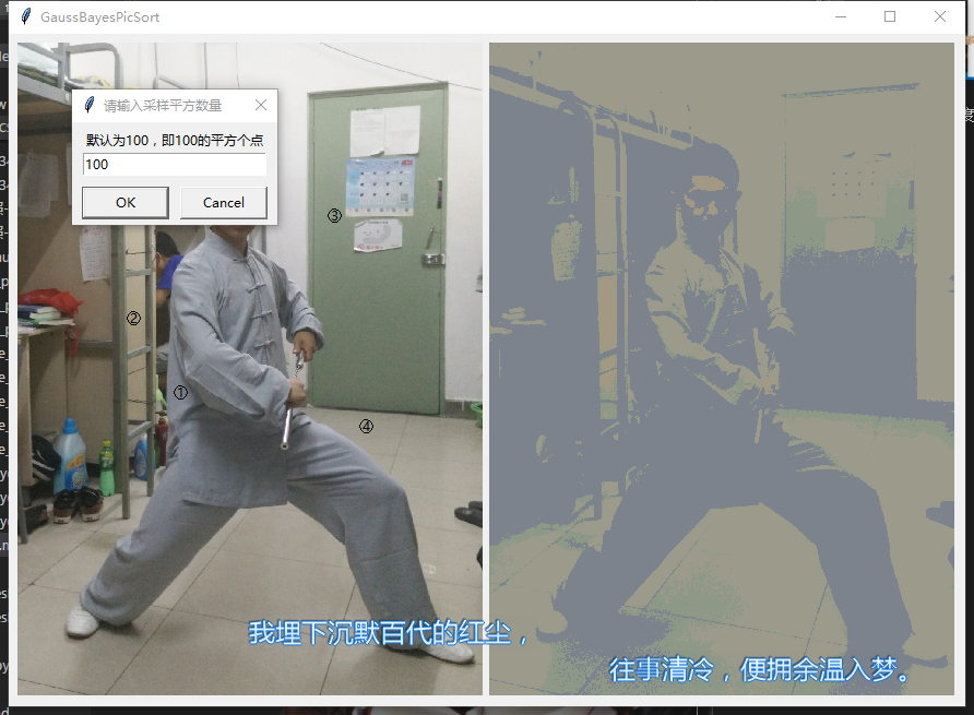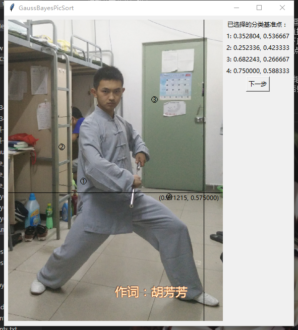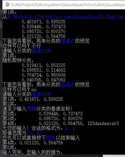 假设条件为每类别先验概率相等,具体怎么个相等法我也不知道,既然是假设,那就干脆由用户输入好了,所以设计就变成了用户随便输入几个分类的基准坐标点,因为假设先验概率相等所以我就不验证用户选择的这几个点是否合理咯,如果他真的就选了几个色值相近的点那也没办法。