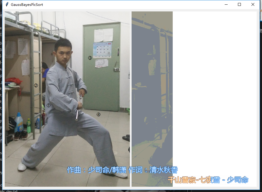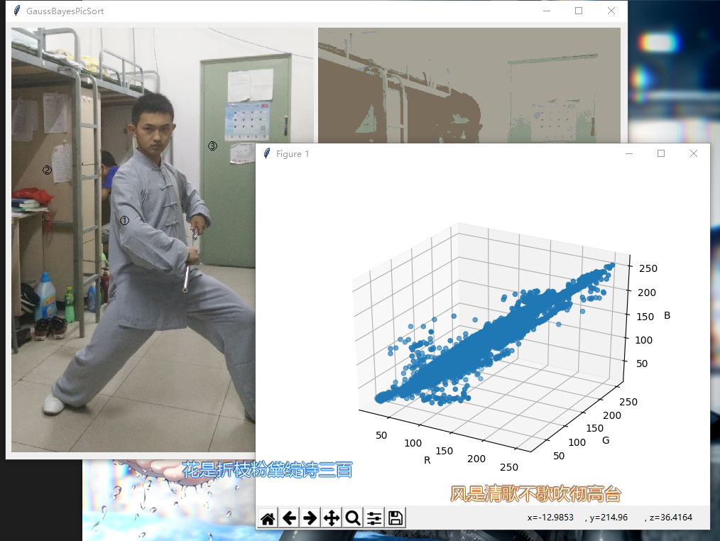 作品完成后我们看到,对于我自己的照片,分类效果不是很好,但对于 CG 插画效果就很棒。原因大概是,照片较模糊,每个肉眼可识别的点上其实由多个不尽相同的像素构成,而分类时这些像素就会时而分入 A 类时而分入 B 类,造成较大的噪点。CG 插画是计算机上色,颜色干净,饱和度高,分类效果自然就好多了。