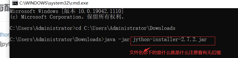 然后运行CMD用cd命令切换到jpython的下载目录下,我的下载目录如下