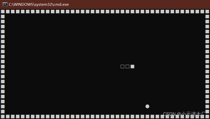 {//system("cls");//InitInterface();if (flag == 1){CursorJump(2 * snake.x, snake.y);printf("■");for (int i = 0; i < snake.len; i++){CursorJump(2 * body[i].x, body[i].y);printf("□");}}else{if (body[snake.len - 1].x != 0){CursorJump(2 * body[snake.len-1 ].x, body[snake.len-1 ].y);printf(" ");}}
