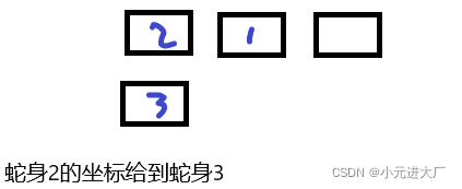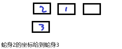 {DrawSnake(0);//先覆盖之前的蛇face[body[snake.len - 1].y][body[snake.len - 1].x] = BlANK;//将覆盖后的标记为空for (int i = snake.len - 1; i > 0; i--){body[i].x = body[i - 1].x;//将后一个身子的坐标放到前一个身子body[i].y = body[i - 1].y;}body[0].x = snake.x;body[0].y = snake.y;snake.x = snake.x + x;snake.y = snake.y + y;DrawSnake(1);//打印蛇