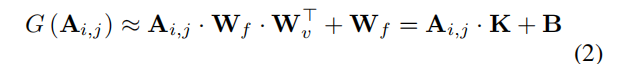 其中K,B∈RK×d是静态权值(在推断时固定),并在所有图像位置之间共享。我们可以看到,函数G与Ai,j近似呈线性关系,即对预测hi的贡献程度直接取决于它在图像位置上的注意分数。