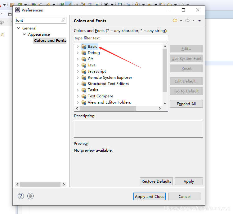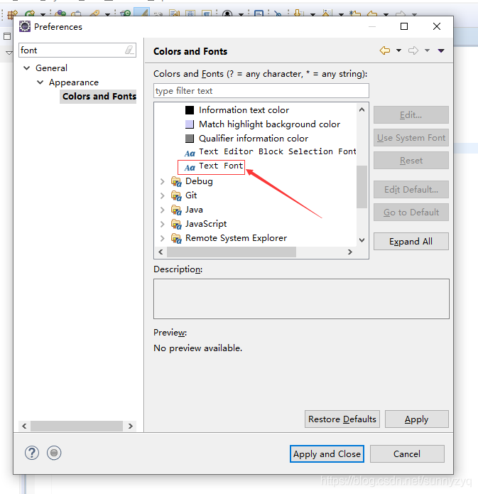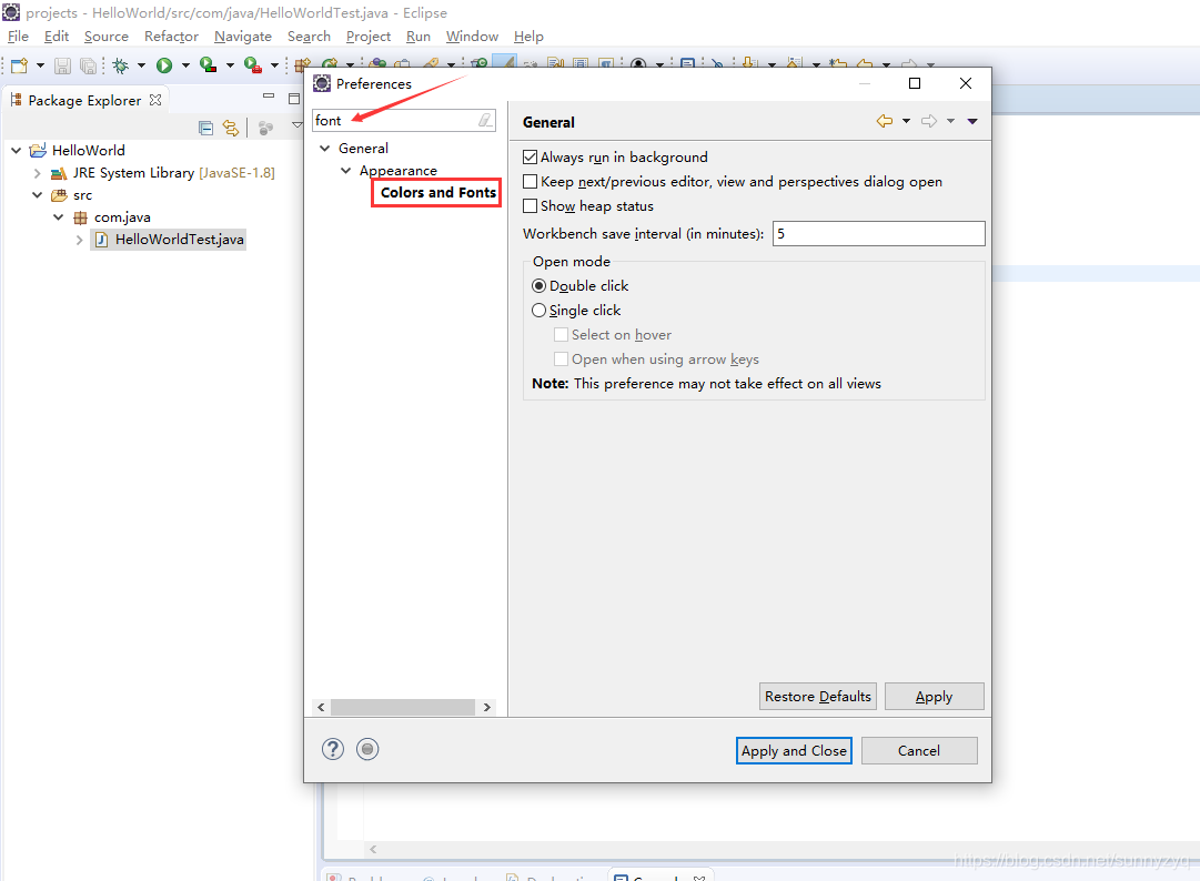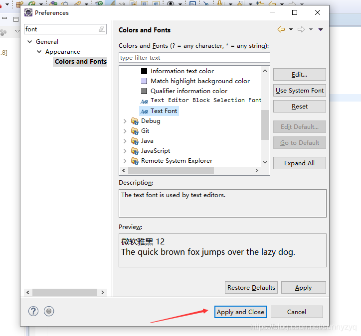 (4)我们在方框里输入 font 后,可以看到一个 【Colors and fonts】,然后点击他