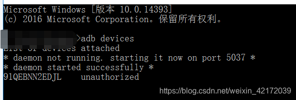 3、连接手机: adb devices 了解成功的话会显示连接成功。如下图
