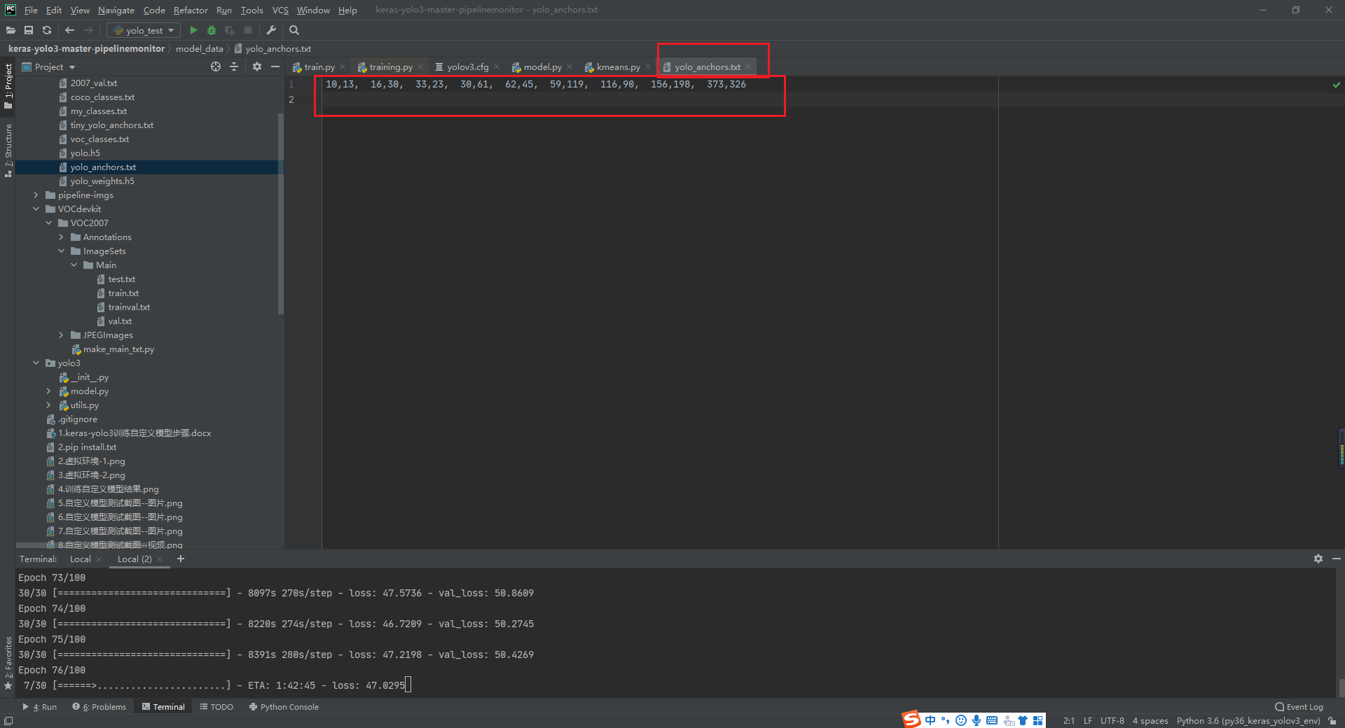 替换原有默认的yolo_anchors.txt文件,再进行模型训练。