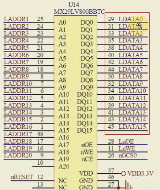 如上 NORFLASH, CPU 的发出的地址 1“ LADDR1”接到了 NORFLASH 的“ A0”地址。
