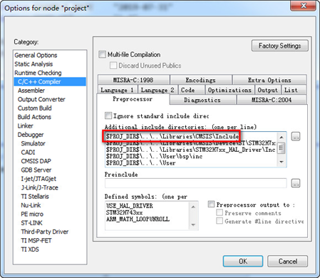 添加DSP所需的头文件路径,这个头文件路径是已经在模板工程中添加好的,这里只是跟大家强调一下: